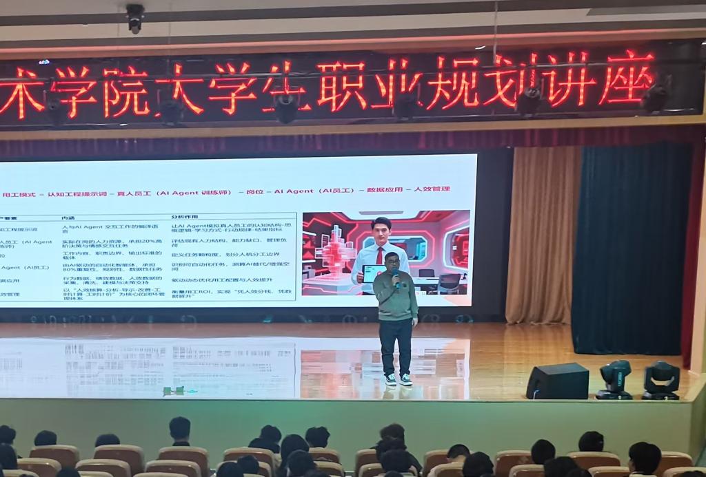 陈博从数字经济下企业用工模式的变化、大学生职业规划现实痛点入手,分析了AI等技术驱动带来的岗位变革与人才需求转型。他针对大学生普遍存在的方向不清、技能脱节等问题,结合案例与数据,强调提前进行知识储备与能力构建的重要性。讲座重点介绍了“AI管理工程师”等新兴职业的发展路径与核心技能,为有意进入人工智能领域的学生提供了实用参考。
