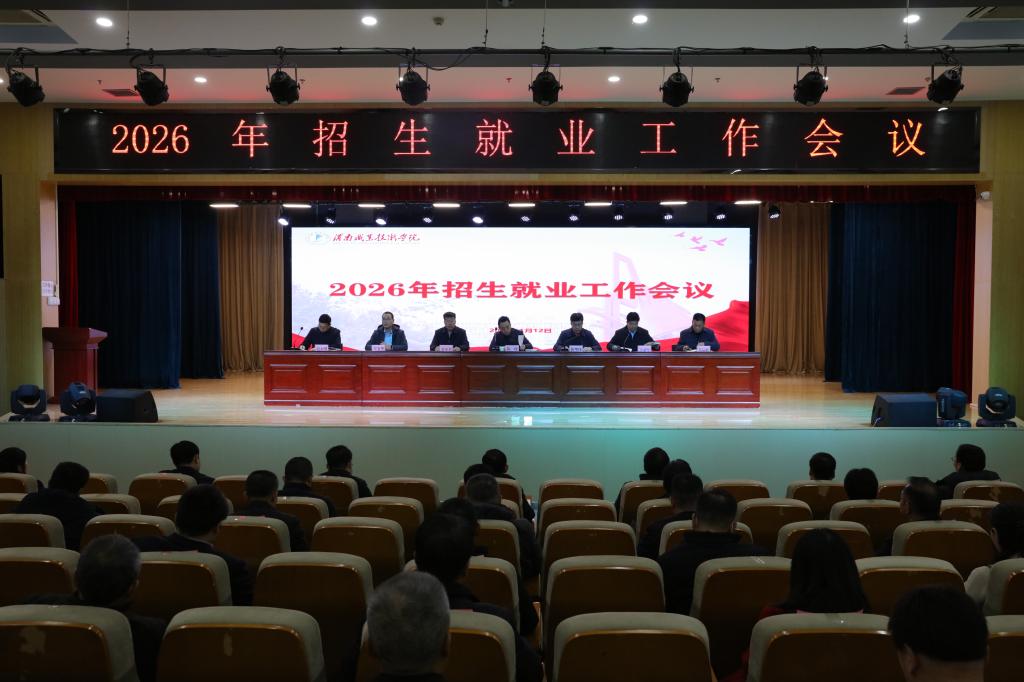 1月12日下午,我校在图书馆一楼报告厅召开2026年招生就业工作会议。学校领导班子成员,副科级以上干部、全体辅导员和招生就业处全体同志参加会议。会议由党委副书记、院长靳华锋主持。