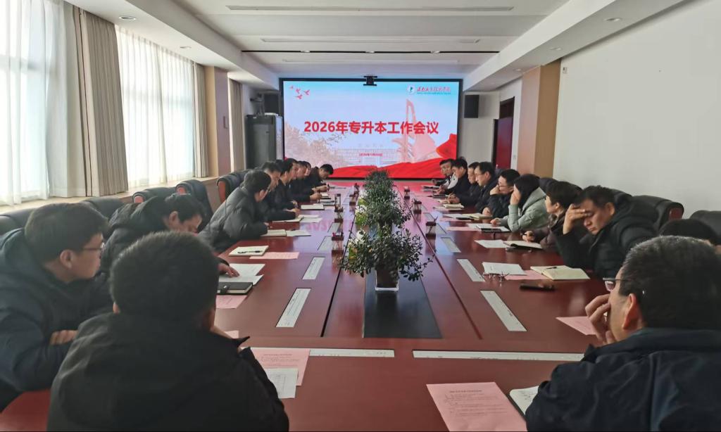 为深入贯彻落实省教育厅关于专升本工作的要求,搭建专科与本科教育贯通的优质桥梁,1月26日下午在我校行政楼五楼会议室召开2026年专升本工作会议,校党委副书记王录军,各二级学院分管招生就业工作的主要领导、招生就业科科长,招生就业处全体人员以及校内专升本培训机构负责人参加会议。