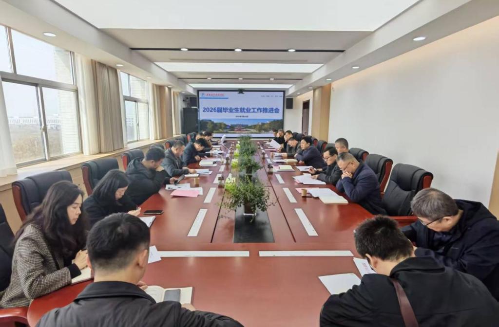 为深入贯彻落实高校毕业生就业工作部署要求,全力推进2026届毕业生就业工作提质增效,3月24日上午,我校在行政楼五楼会议室召开2026届毕业生就业工作推进会。校党委副书记王录军、相关职能部门负责人、各二级学院主要领导、分管就业工作领导及招生就业科科长参加会议。会议由招生就业处处长党晓鹏主持。